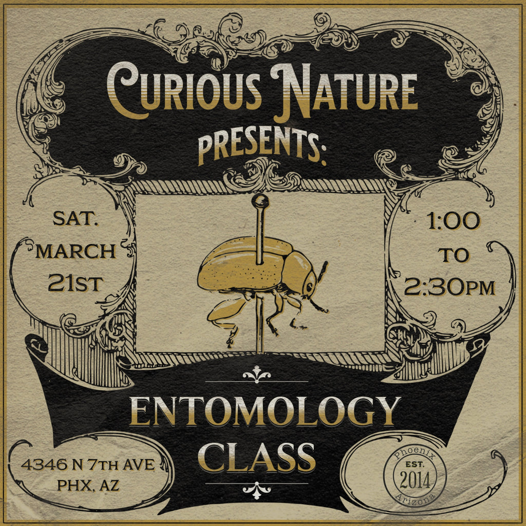 Join us on Saturday, March 21st from 1:00pm to 2:30pm for a lesson in insect spreading and mounting, also known as entomology! Students will be learning how to prepare, hydrate, spread, and mount a variety of bugs and butterflies.