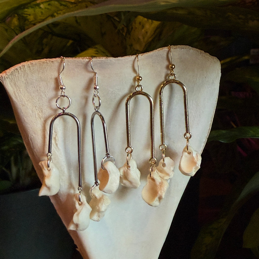 Arch pendant with 2 bobcat toe bones measuring approximately 2.75".
