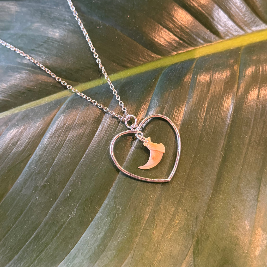 Heart shaped hoop measuring 1.5" W x1.25" H with authentic bobcat claws hanging in the center. Chain measures 22"