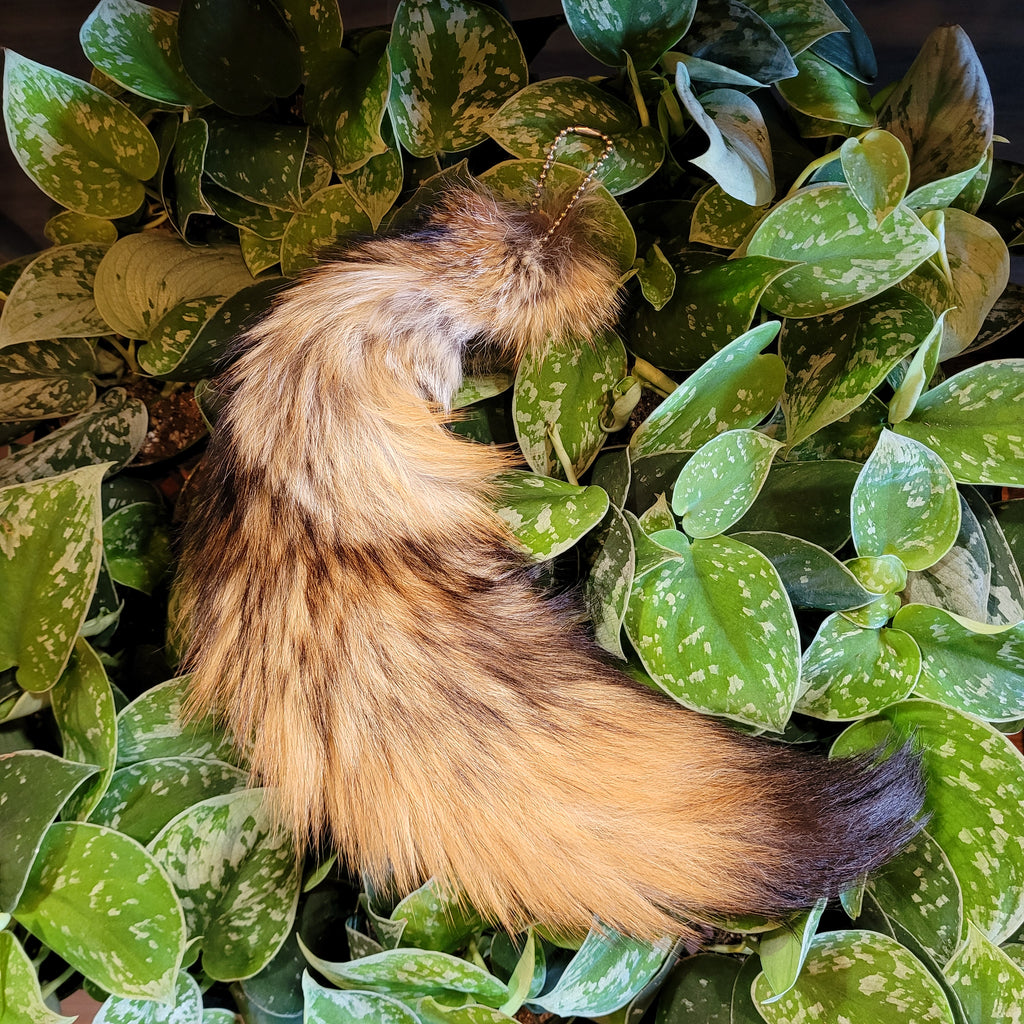 Coyote tail on a keychain measuring approximately 17". Great for hanging off your belt loops or bags!