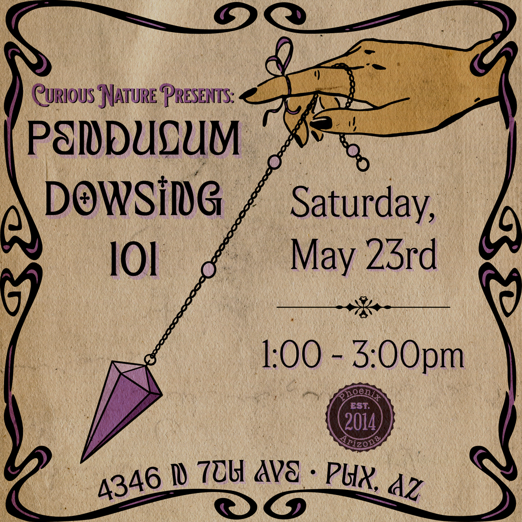The pendulum is an ancient tool that has been used throughout the centuries for divining everything from finding a source of water in the desert, to finding the answers to questions about one's journey and path through life. Join Beth on Saturday, May 23rd, from 1-3pm, as she guides you through some history and basic techniques of using the pendulum.