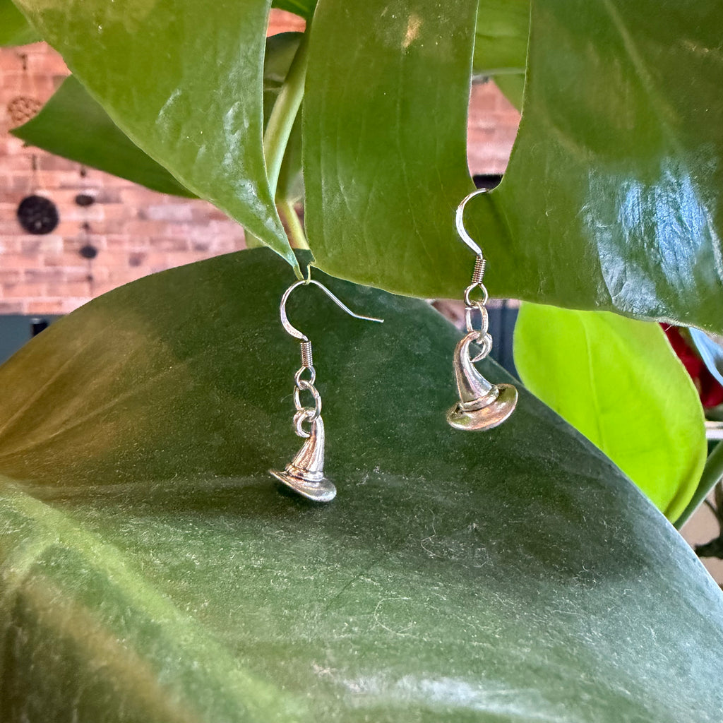 Silver witch hat charm measuring just over half an inch on a fishhook style hanger!